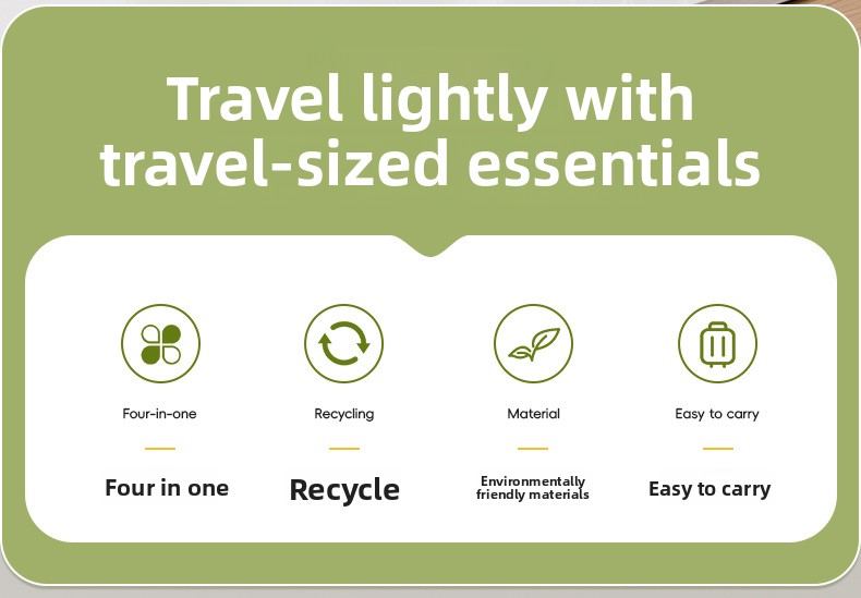 This compact 4-in-1 travel bottle set features a leak-proof design that prevents spills, making it ideal for shampoo, oils, and other liquids. Made from durable ABS + PET material, it’s built to resist impacts and last long. The portable layout keeps multiple products neatly organized, while label stickers make it easy to identify contents at a glance.