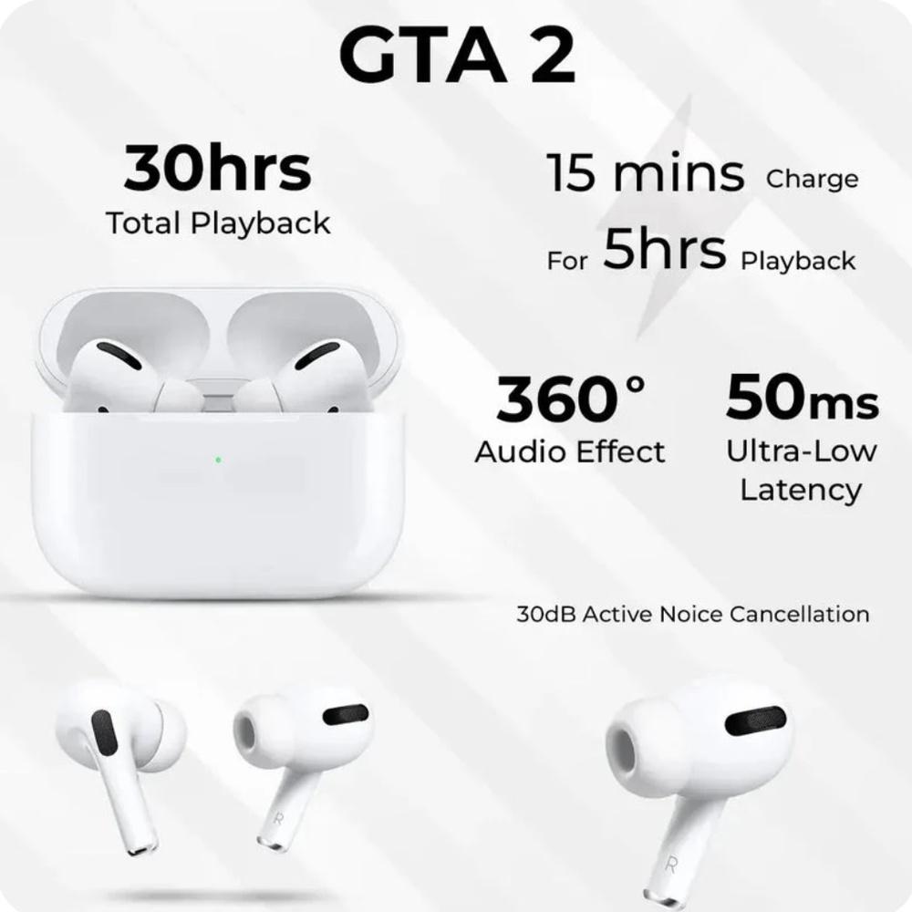 Elevate your audio with GTA2 Wireless Earbuds Pro. Enjoy noise canceling, deep bass, multi-mode, 5+ hours playtime, MagSafe charging, personalized sound, and gaming mode.