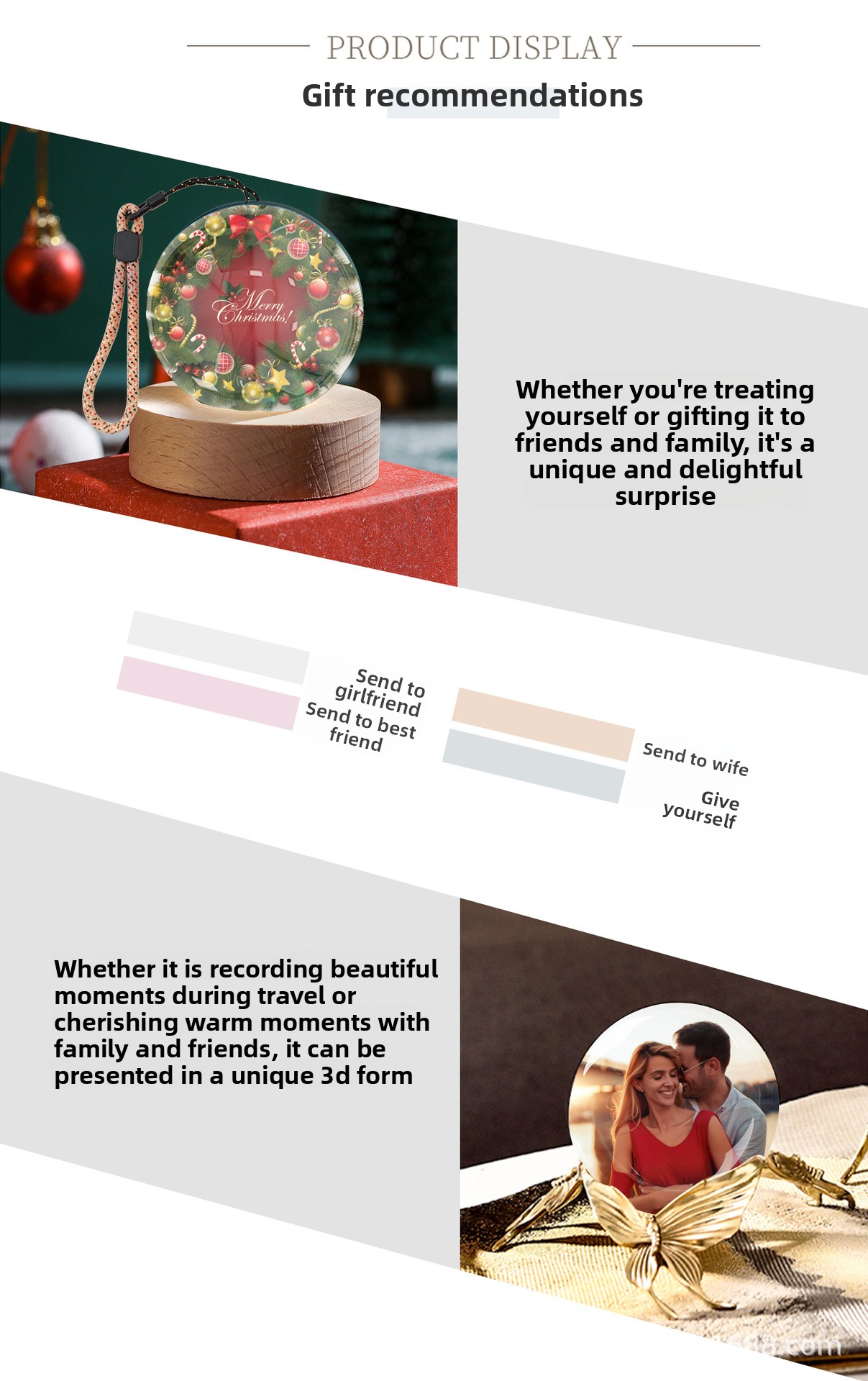 This electronic crystal ball projects videos and images with stunning visual effects through its crystal-clear glass display. The WiFi-enabled model connects seamlessly to your mobile device via iOS app, letting you transfer and showcase your favorite content. Store up to 25-30 videos with 100MB of storage capacity. Perfect for gifting on holidays, birthdays, or special occasions
