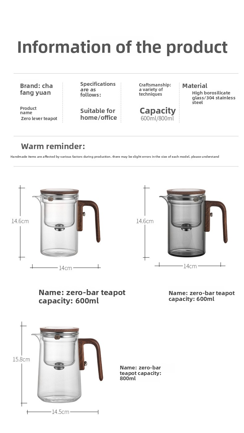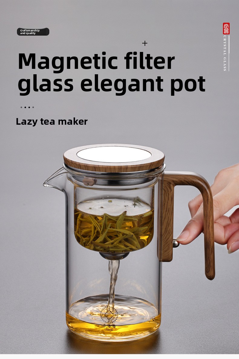 This magnetic suction tea cup combines functional innovation with traditional craftsmanship. The borosilicate glass construction handles high temperatures while the magnetic lid ensures a secure seal. An integrated filter enables precise steeping control and sediment-free pouring—ideal for premium loose-leaf teas. Available in 520ml to 1000ml capacities, it suits both daily brewing and ceremonial use. The refined aesthetic complements any tea service while delivering practical performance for discerning tea enthusiasts.