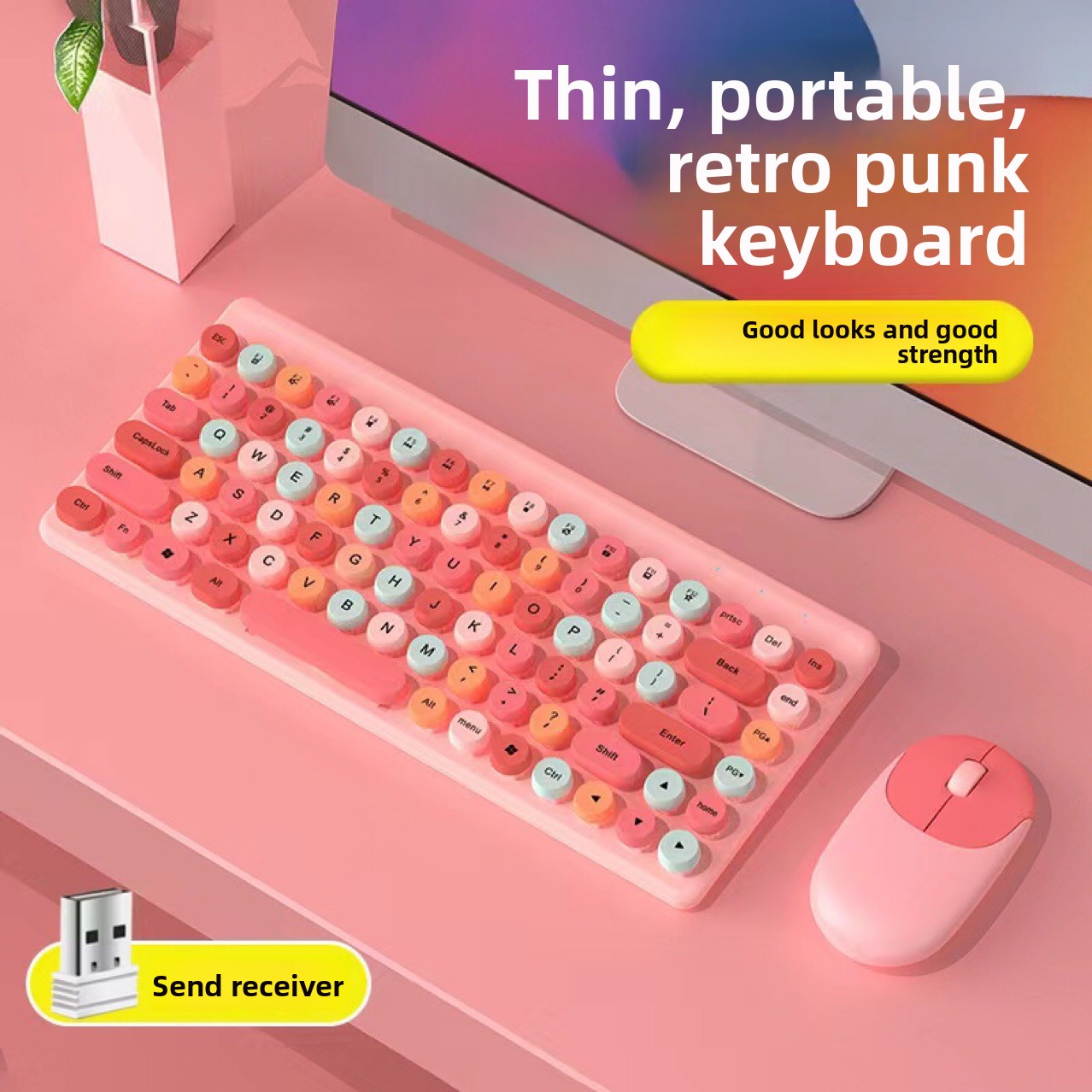 Experience seamless wireless typing and navigation with this retro-styled keyboard and mouse combo. The ergonomic design ensures comfort during extended use, while the waterproof construction adds durability. Featuring a 1600dpi sensor for precise control and USB connectivity for hassle-free setup, this set blends nostalgic aesthetics with modern functionality