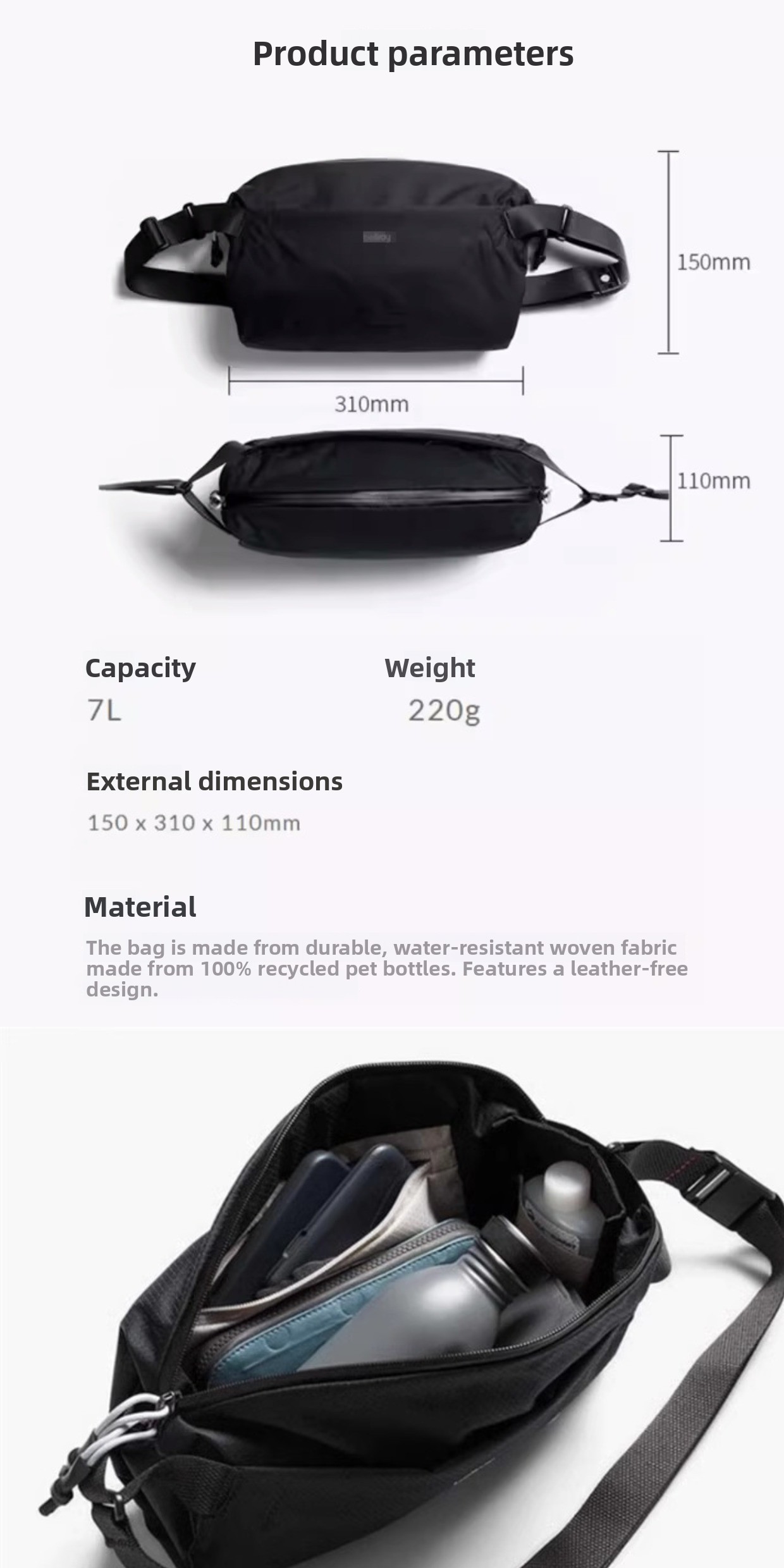 - Lightweight & Compact: 7L capacity with a minimalist design, ideal for comfortable all-day wear.