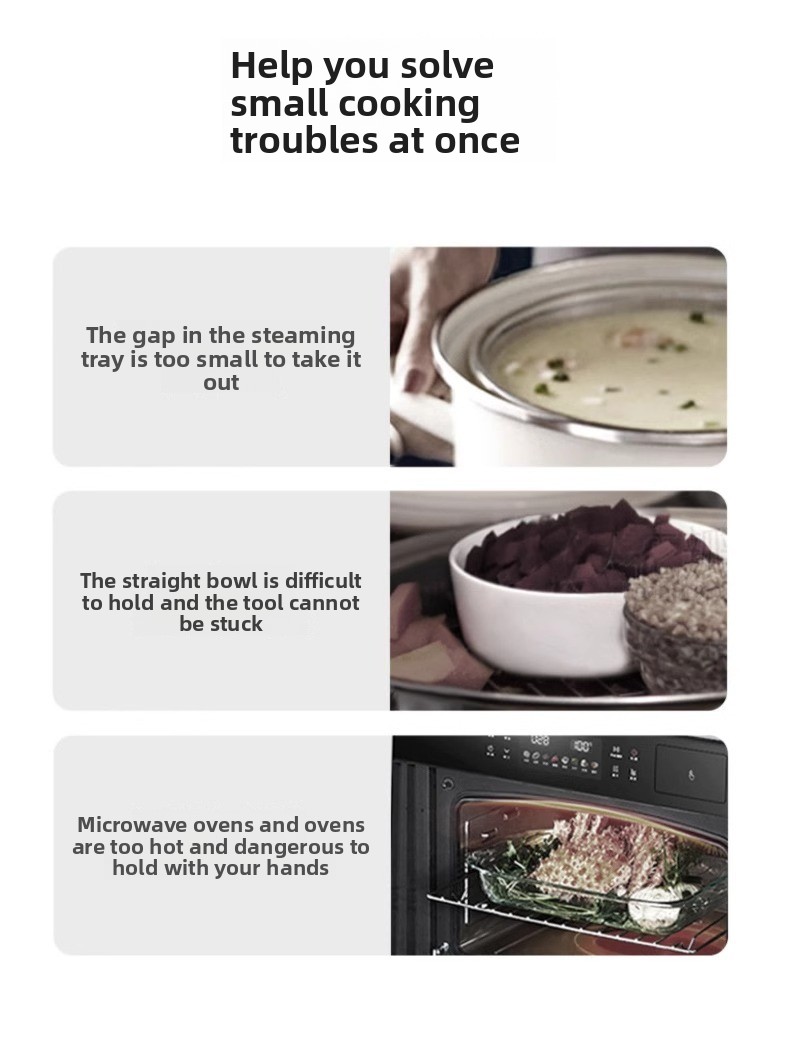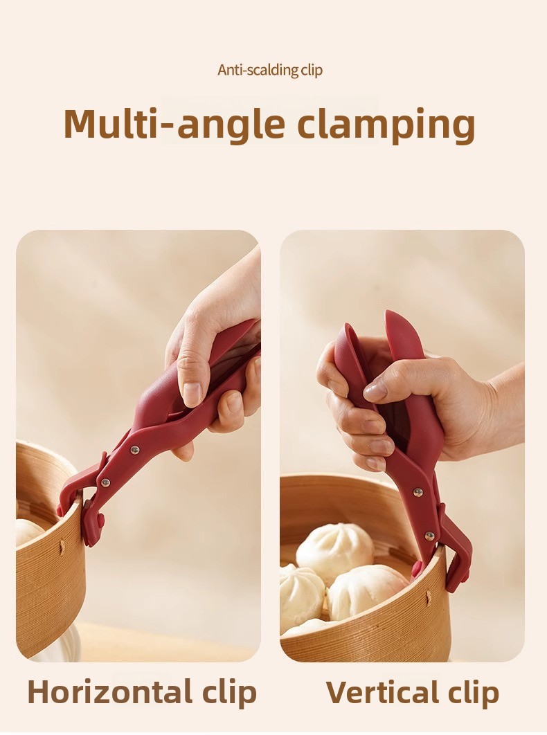 Silicone bowl clip with heat-resistant construction for microwave and oven use. Non-slip grip ensures secure handling, while durable silicone withstands repeated kitchen applications.